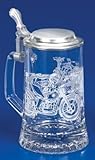 ▷▷▷▷▷ Motorcycle Etched German Glass Beer Stein | Beer Mugs