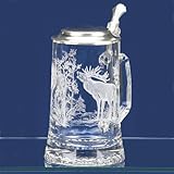▷▷▷▷▷ 13.5 oz. Glass Elk Stein w/Pewter Lid | Beer Mugs