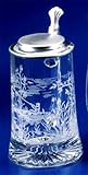 ▷▷▷▷▷ Fisherman Fishing Etched German Glass Beer Stein | Beer Mugs